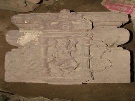 | Description / विवरण | It is a sculpture of chamunda. She is shown in tribhang posture. Shiva is shown below the feet of chamunda. A man head skull is shown left upper armed at chamunda. Yali is shown both side the main sculpture. |
