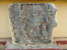 | Description / विवरण | This is a four arm god, Agni, the fire god shown holding axamala, a captivated head and in two arm shruva and lace. Decorated with moustaches and beared, god is shown on his vehicle ship. |