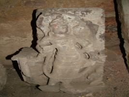 | Description / विवरण | It is a sculpture of four armed god. One left armed is stands at left waist. Kundal earrings is shown both ear. It is a twobhang posture. A female attendant at left side near the feet is in worshipping posture. |