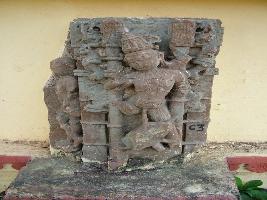 | Description / विवरण | This is a four armed god Vishnu, shown slaying the demon Gajasura. Although arms are broken, only an imitation of Gajasura is seen. |