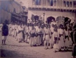 | Description / विवरण | In this photograph, an elephant and people are shown. The elephant is roved with cloth on which the king with his servant is shown. |