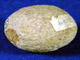| Description / विवरण | Stone ball with rough and pitted surface, probably used as sling ball. Clay incrustation is seen all over. |