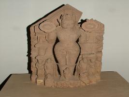 | Description / विवरण | A standing sculpture of Surya is shown holding lotus in both arms. At the base, seven horses are shown alongwith Danda and Ringala, Hayagriva and Worshippers. At the feet Usha or Pratyusha is shown in Abhaya and Varda posture. |