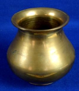 | Description / विवरण | Lota made of brass having averted rim, narrow neck, bulbous body and flat circular base. It is without any decoration. |