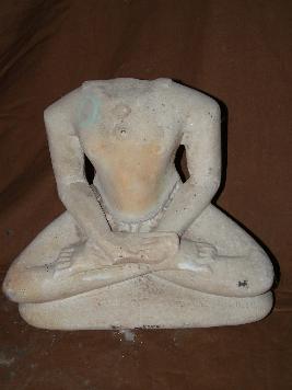 | Description / विवरण | This in an image of Tirthankara which is in Dyana-mudra and installed on a triangular shaped pedestal. The right palm is having a symbol while the front side of the pedestal is having three lines inscribed in Devnagari script. Head along with neck portion is lost. Nipples of the image have been shown prominently. |