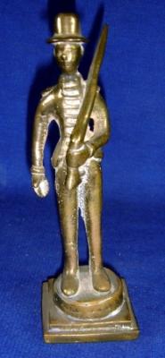 | Description / विवरण | Metal man in standing position. He is holding a gun with his left hand. He is wearing an ethnic cap and dress. |