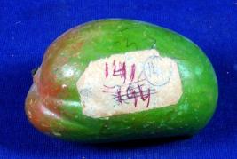 | Description / विवरण | Mango made of paper mache, its upper portion is highlighted with red colour. |