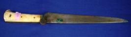 | Description / विवरण | Iron knife having straight single edged blade and ivory hilt which has stains and many cracks. |
