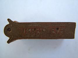 | Description / विवरण | It is a seal made from copper and wood. An inscription has given at top wooden surface. It is partially rectangular in shape. |