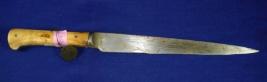 | Description / विवरण | Iron knife having straight single edged blade and ivory hilt which has stains and many cracks. |