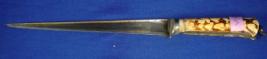 | Description / विवरण | Iron knife straight blade with single edge, the handle is made of fish horn with design. |