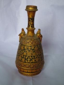 | Description / विवरण | Water bottle, surahi, lacquered pottery, raised ornament. Depiction of two birds. |