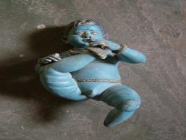 | Description / विवरण | It is a Bal Gopal. It has black uncombed hair, garland in neck and waist. Arm band or armlet karghani in both hand. |