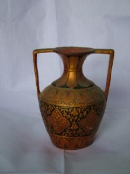 | Description / विवरण | Vase, double handled, lacquered pottery, raised ornament Greek shape. |