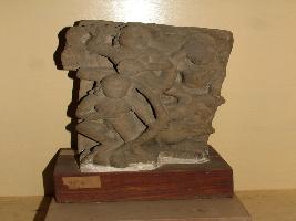 | Description / विवरण | A sculpture with male and female, might be a part of a large sculpture, probably of a Surya sculpture. While two male figures are shown on top with one has shield in hand and other one standing on vyala figure, female one is shown with bow in her hand. |