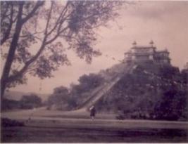 | Description / विवरण | It is a photograph of Lands Down Palace in which a building double storied is shown on the hillock. It is provided with a pathway. In front of it, there is an open space. |