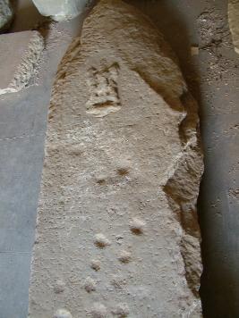 | Description / विवरण | This is a huge memorial stone piece on which one deity, some lines of Devnagari script and few marks have been executed. It seems to be unfinished, upper portion is of conical shape. |