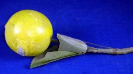 | Description / विवरण | Mousami in yellow colour with stem and two broken leaves. It is made of paper mache. |