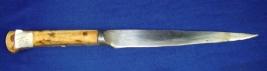 | Description / विवरण | Iron knife having straight single edged blade and ivory hilt which has stains and many cracks. |