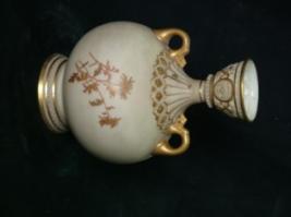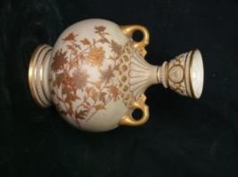 | Description / विवरण | Vase with two gilt handles, ivory ground and decorated with golden floral motifs. |