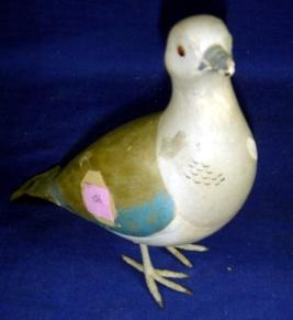 | Description / विवरण | Pigeon made of paper mache and painted in its natural colours. The tail and claws are made of iron. The neck has a hole at the left side. |