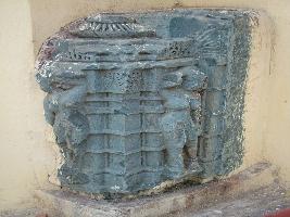 | Description / विवरण | This is a part of a pillar, decorated with two female katihasta figure, a fly whisk bearer carved in tribhanga. Its top has reviding bell shaped capital. |