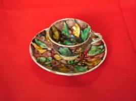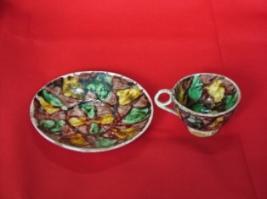 | Description / विवरण | Saucer and cup in white, green, yellow and brown colour. |
