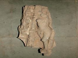 | Description / विवरण | This is a tribhanga sculpture of a Nayika shown standing with defaced and broken arms. She is heavily ornamented with waist girdle and stylised hair dress. |