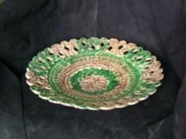 | Description / विवरण | Salver with perforated border green and white pottery. |