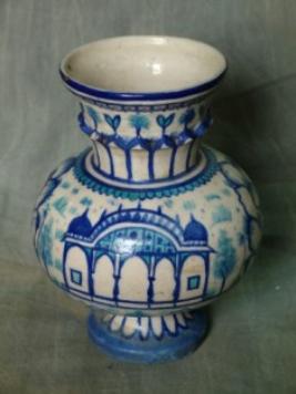 | Description / विवरण | Miniature Vase , Amber shaped in blue and white colour with floral and architectural patterns on it. |