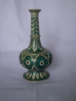 | Description / विवरण | Water bottle Surahi . White, blue and green. |