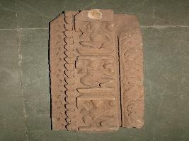 | Description / विवरण | This is a door jamb consisting of three male figures in different poses and decorated by floral motifs. |