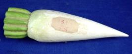 | Description / विवरण | Reddish made of paper mache with leafs. Its colour is slightly flaked off. |