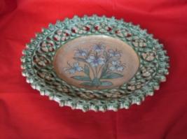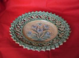 | Description / विवरण | Tray with indented and perforated green border with buff flowers and having a shrub with blue flowers on buff ground in the centre. School of Art, Jaipur. |