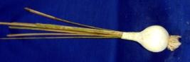 | Description / विवरण | Spring onion made of paper mache and painted with white colour. It is slightly chipped off at the top. The leaves are made of bamboo. |