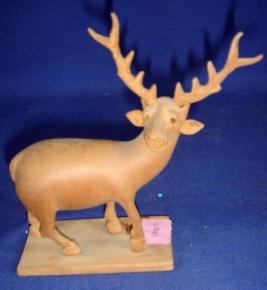 | Description / विवरण | Small wooden statue of a standing stag on an oval platform. Stag made of wood standing on a wooden pedestal.It has two long horns. |