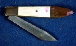 | Description / विवरण | Iron foldable knife with straight blade. The handle is fitted with ivory on both the sides. |