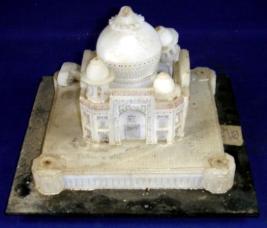 | Description / विवरण | Small replica of Taj Mahal kept on black stone platform. The minarets of the Taj Mahal are completely broken and some are partially broken. |