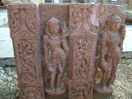 | Description / विवरण | It is a sculptural plaque, decorated with two female attendants carved in katihasta, holding water pot, carved on each niche. The plaque is decorated with purna-ashata motif. |