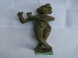 | Description / विवरण | It is in tribhanga position Krishna with Gwal Bal blowing pipe in hand. One right feet in bending position. Hole in ear exist. |