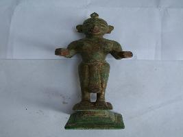 | Description / विवरण | It is a man wearing dhoti, peacock fan on head, two hands in forward direction, hole exist in fist, sambhang position. |