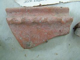 | Description / विवरण | It is a broken piece of a red ware pot, having bulging structure shown over the neck and have cut shape zig-zag structure over the pottery. |