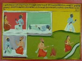 | Description / विवरण | Miniature painting based on Mahabharat - Ashwamegh parva depicting Ram is taking rest and thinking about Sita and saw he is leaving Sita in vana in his dream. Then next morning Ram called up Vashishth and describe him the dream. |