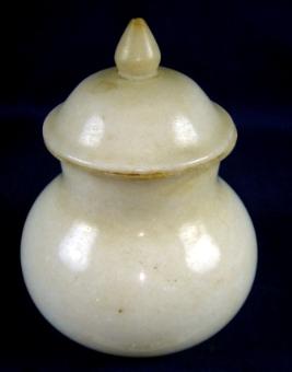 | Description / विवरण | Plain vase with knob having flat circular base, bulbous body. There is a knob on top. |