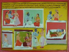 | Description / विवरण | Miniature painting based on Mahabharat - Ashwamegh parva depicting Janak after handing his kingdom to Ram goes to the forest with Vishwamitra. It also depict people are questioning about the purity of Sita. |