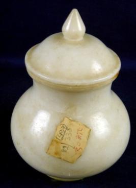 | Description / विवरण | Plain vase with lid having flat circular base and bulbous body. The lid has a pointed knob. |