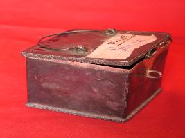 | Description / विवरण | It is a square shaped box for keeping seal inside it. It has a bent circular handle, supported by 2 hooks. It has a cover which can be open. |