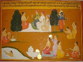 | Description / विवरण | Miniature painting based on Kashi khand depicting at the upper left side Dhruv worshipping Vishnu. The painting also depict Dhruv taking bath in Ganga at the lower right side , Dhruv talking to few people at upper centre and doing Yagna at the lower left side . |