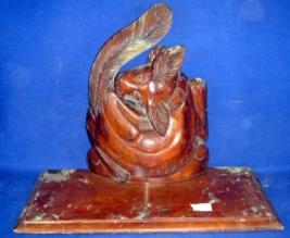 | Description / विवरण | Rectangular wooden wall stand having a figure of dog curved backwards, in one side. It is wearing a collar with buckle. |