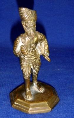 | Description / विवरण | Brass image of a water man wearing dhoti and pagri and carrying the water beg with his both hands. |